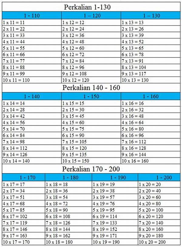 Melakukan perkalian antara 100 sampai 200 bisa jadi terlihat sepele, tetapi sebenarnya memiliki banyak manfaat praktis dalam kehidupan sehari-hari. Misalnya, ketika kita berbelanja dan ingin mengetahui harga total dari beberapa barang, atau saat memperkirakan biaya perbaikan rumah. Ini bukan hanya tentang hitungan semata, tetapi juga tentang memahami dan memprediksi kebutuhan finansial secara cepat dan akurat.